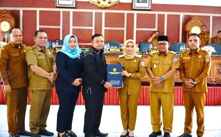 Labuhanbatu | Radarkriminaltv.com – Bupati Labuhanbatu dr. Hj. Maya Hasmita, S.p. OG, M.K.M, didampingi Wakil Bupati Labuhanbatu H. Jamri ST, menandatangani nota kesepakatan kebijakan umum perubahan APBD dan perubahan prioritas dan plafon anggaran sementara APBD Kabupaten labuhanbatu Tahun Anggaran 2025 pada sidang paripurna DPRD Kabupaten Labuhanbatu yang diselenggarakan di Gedung paripurna DPRD Selasa 25/7/2025.