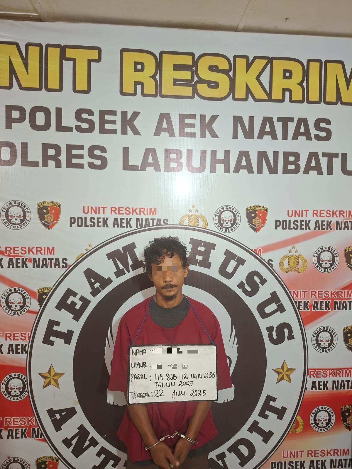 Hasil informasi dari masyarakat pada hari Minggu tanggal 22 Juni 2025 sekira pukul 21.30 Wib, Team Opsnal Polsek Aek Natas Polres Labuhanbatu mendapat informasi dari masyarakat bahwa di Areal Kebun Kelapa Sawit milik H.AMAN yang berada di Dusun VII Kongsienam Desa Terang Bulan Kecamatan Aek Natas Kabupaten Labuhanbatu Utara sering terjadi transaksi dan pesta narkotika jenis sabu;