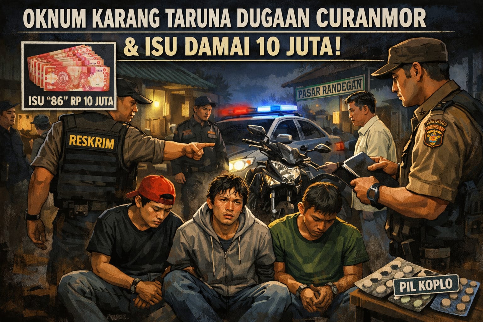 MOJOKERTO, Radarkriminaltv.com – Suasana dini hari di Pasar Desa Randegan, Kecamatan Dawarblandong, Kabupaten Mojokerto, yang biasanya hanya dipenuhi aktivitas pedagang sayur dan pembeli kebutuhan pagi, mendadak berubah menjadi pusat perhatian warga setelah muncul dugaan kasus pencurian kendaraan bermotor yang menyeret tiga pemuda dari organisasi kepemudaan desa.