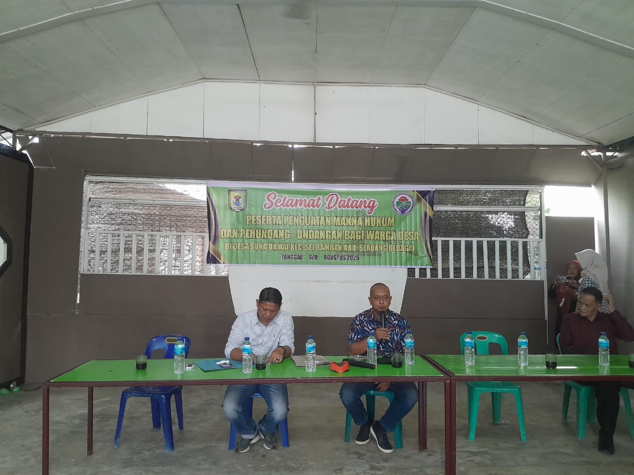 SERGAI, Radarkriminaltv.com – Penyuluhan Hukum yang diselenggarakan 5 Kepala Desa di Kecamatan Sei Bamban, Serdang Bedagai, Sumatera Utara, berlokasi di Rumah Kades Sukadame di Dusun IX Desa Sukadame, pada Sabtu (27/9/2025) sekira pukul 11.00 WIB -13.00 WIB.