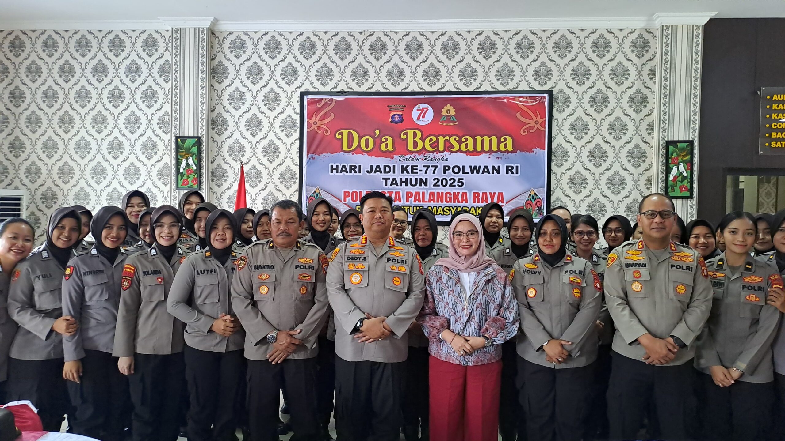Palangka Raya | Radarkriminaltv.com – Dalam rangka memperingati Hari Jadi Polisi Wanita (Polwan) ke-77, Polresta Palangka Raya menggelar acara Do’a bersama di ruang Lobi Mapolresta, Senin (1/9/2025).