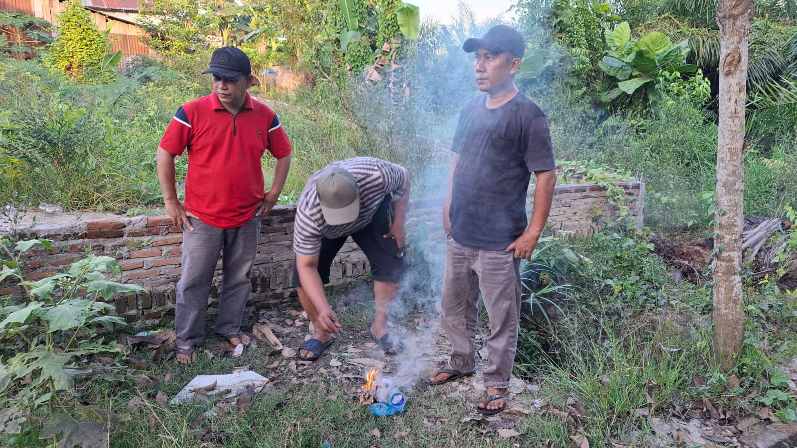 Petugas menyasar area perkebunan sawit milik masyarakat di Lingkungan Kampung Tengah yang selama ini diduga sering dijadikan lokasi transaksi maupun tempat mengkonsumsi narkotika jenis sabu.