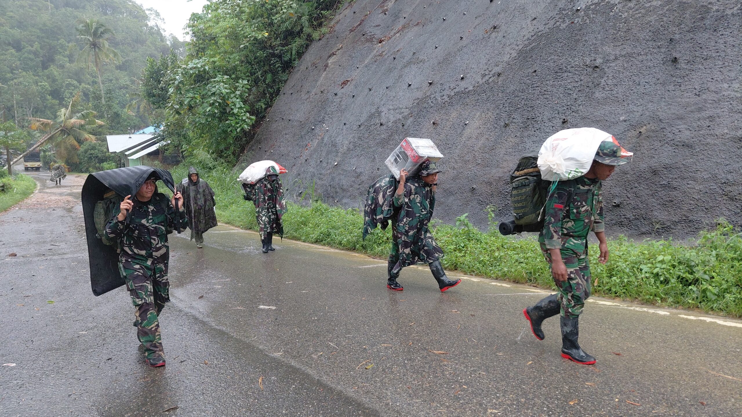 Meski medan berat, hujan deras, dan suhu dingin menggigit sepanjang perjalanan, tidak satu pun prajurit menunjukkan tanda mundur. Mereka bergerak dalam formasi rapat, saling menopang, memastikan seluruh logistik tiba dengan aman.