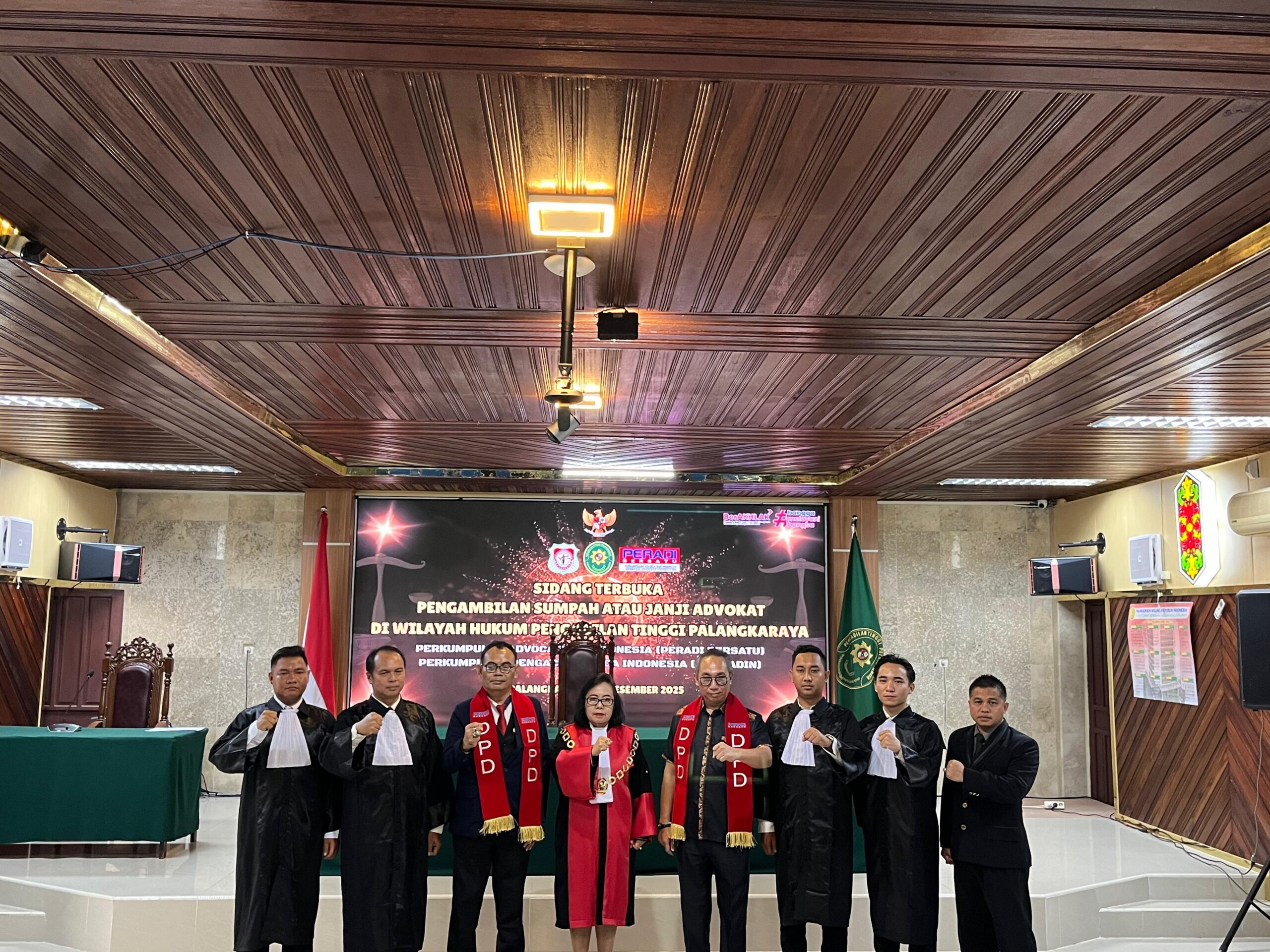 Palangkaraya, Radarkriminaltv.com – Pengadilan Tinggi Palangka Raya pada hari Selasa tanggal 2 Desember 2025 kembali mengadakan pengambilan sumpah atau janji advokat berjumlah 12 orang terdiri dari 4 calon advokat dari Perkumpulan Advocateur Indonesia (Peradi Bersatu) Dewan Pimpinan Daerah Kalimantan Tengah dan 8 advokat dari Perkumpulan Advokat Muda Indonesia (Permadin) yang di pimpin ketua Pengadilan Tinggi Palangka Raya Dr.Pujiastuti Handayani,SH,MH di saksikan anggota wakil ketua Pengadilan Tinggi (PT) .