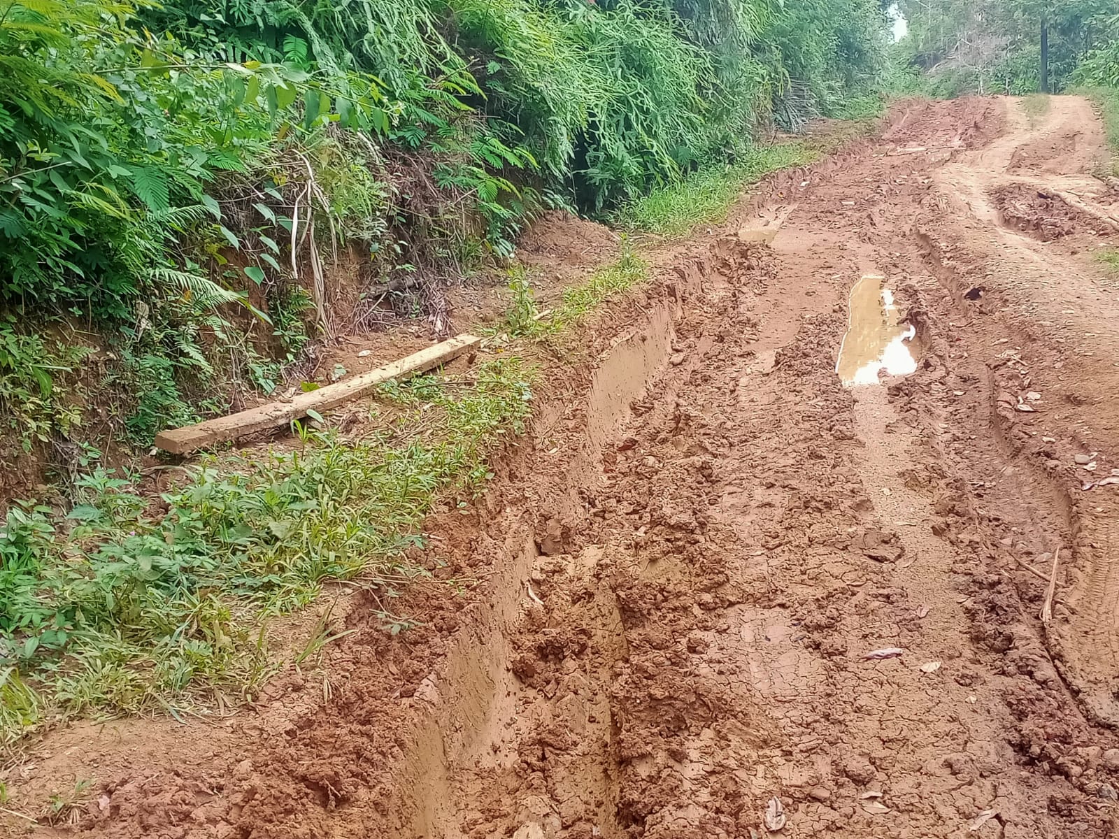 Badan jalan terlihat hancur, berlubang, dan membentuk alur-alur dalam yang berisi air keruh. Kondisi ini sangat mengganggu kenyamanan dan keamanan bagi pengguna jalan, baik yang menggunakan kendaraan roda dua maupun roda empat. Bahkan, saat curah hujan tinggi, akses ini nyaris tidak bisa dilalui.